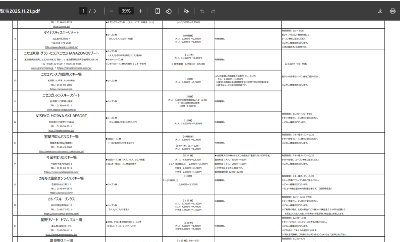 これはシーズンネットに加入しているスキー場のシーズン券を持っておりましたら、他のシーズンネットに加入しているスキー場の1日券が大変お得に購入できる制度でございます。